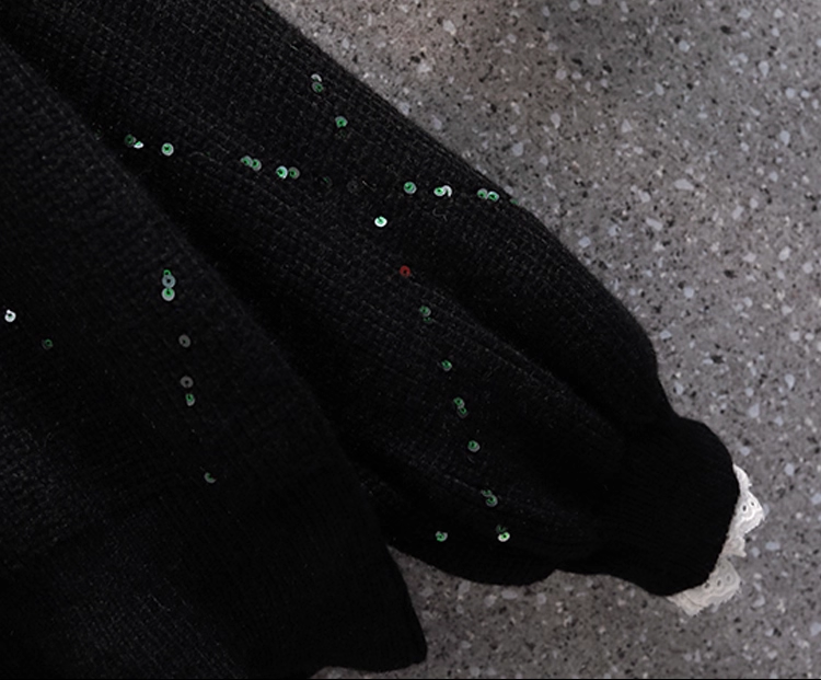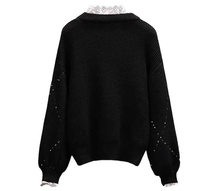 Black Lace Splicing Sweater Fashionable Fake Two-piece Loose Sweater YM2292