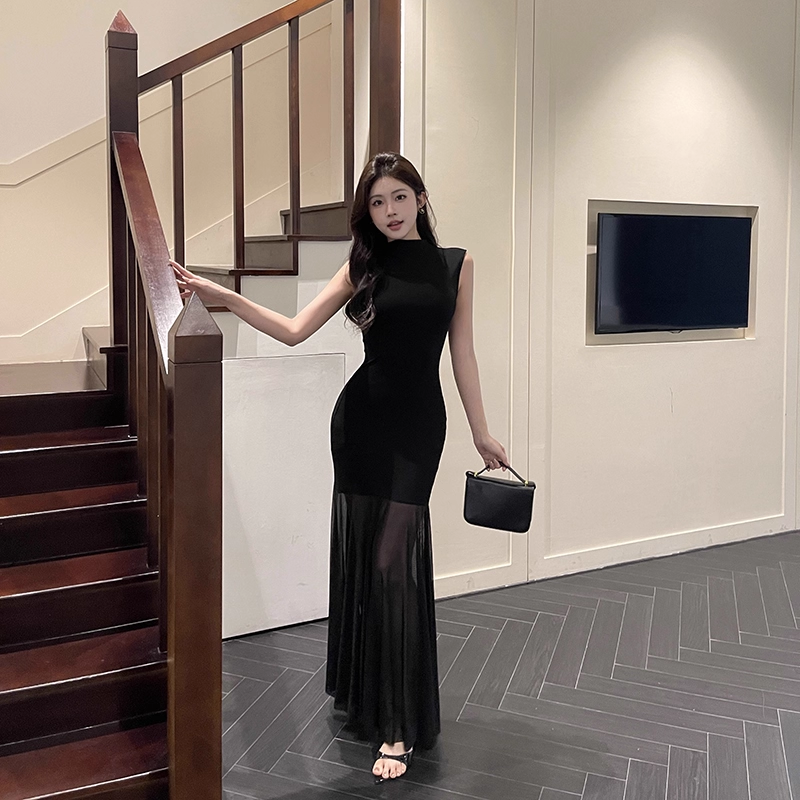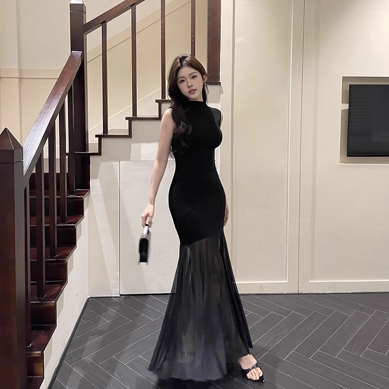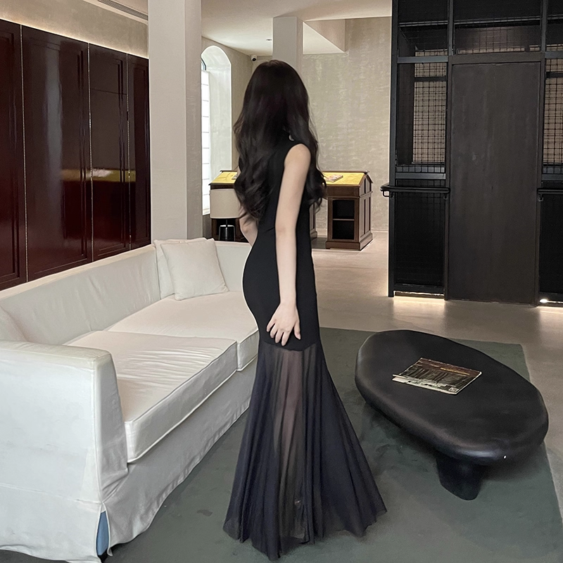Black Sexy Sleeveless Mermaid Long Holiday Dress Vacation Dress YM2222