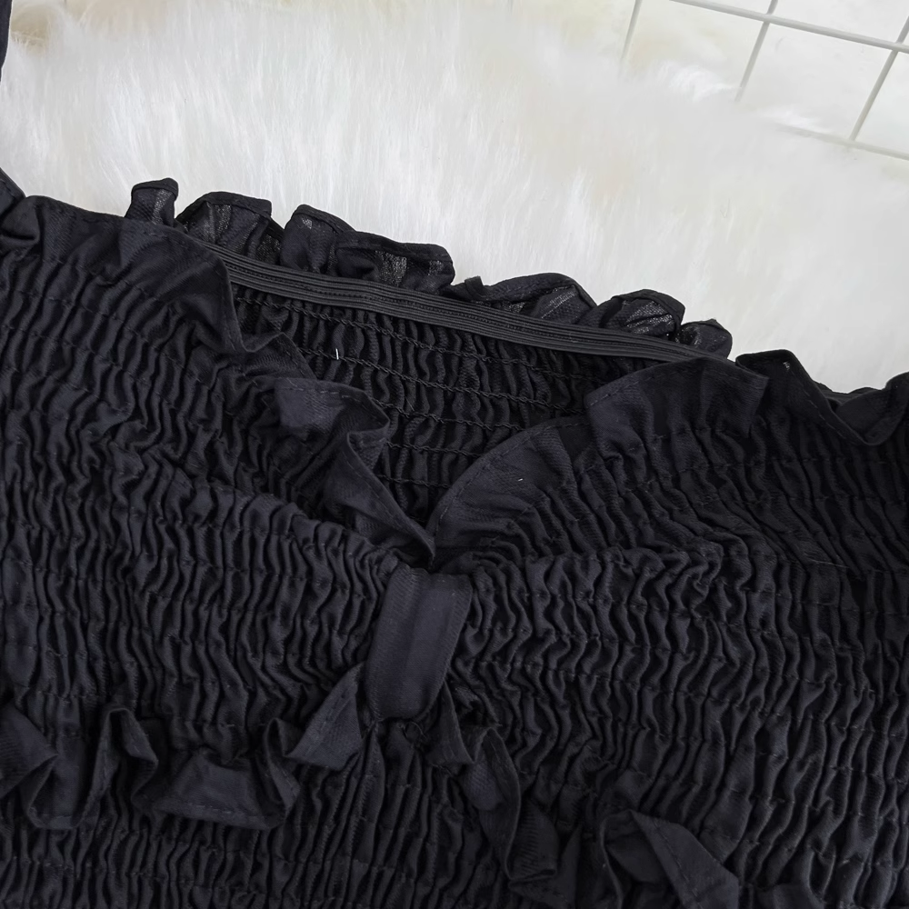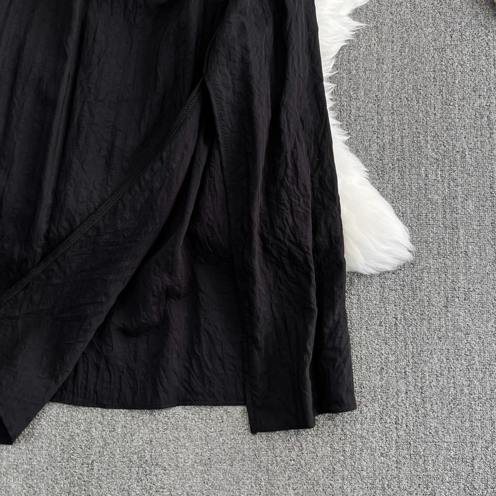 Bubble Short Sleeve Bowknot Square Neck Slit A-Line Dress , YM276
