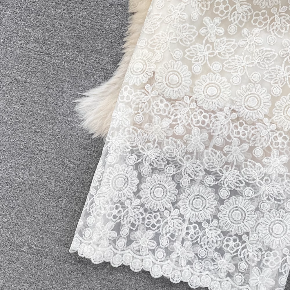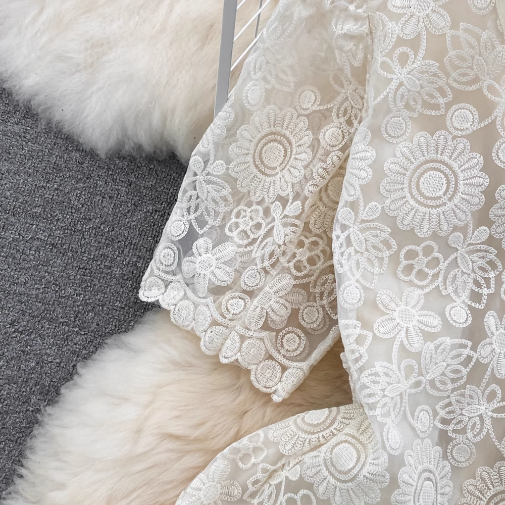 Bubble Short Sleeve Round Neck Embroidered Lace Dress YM285