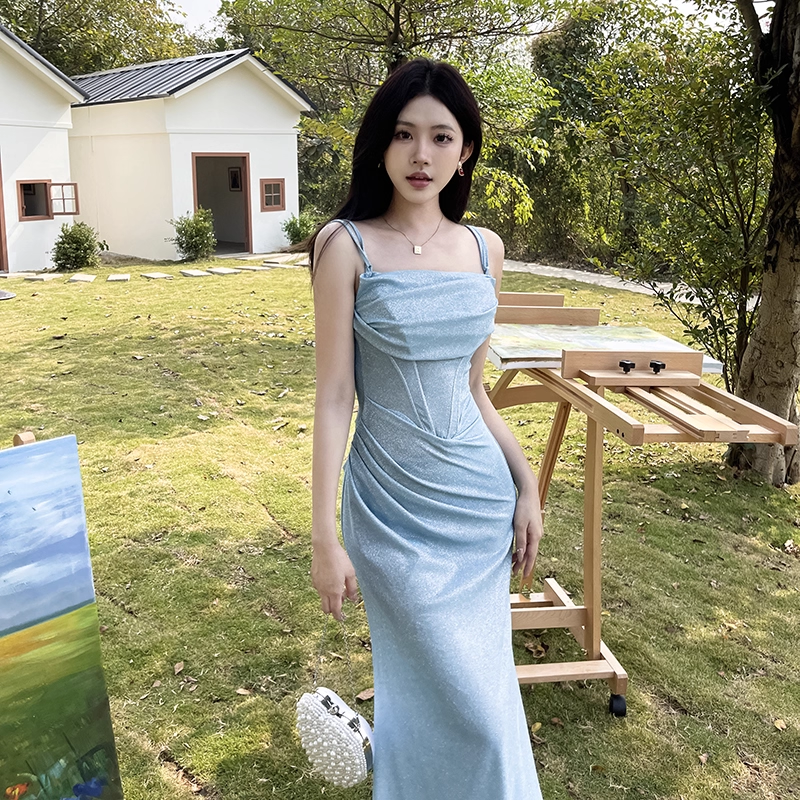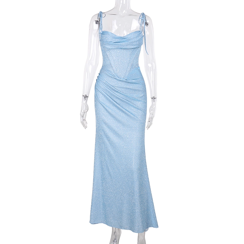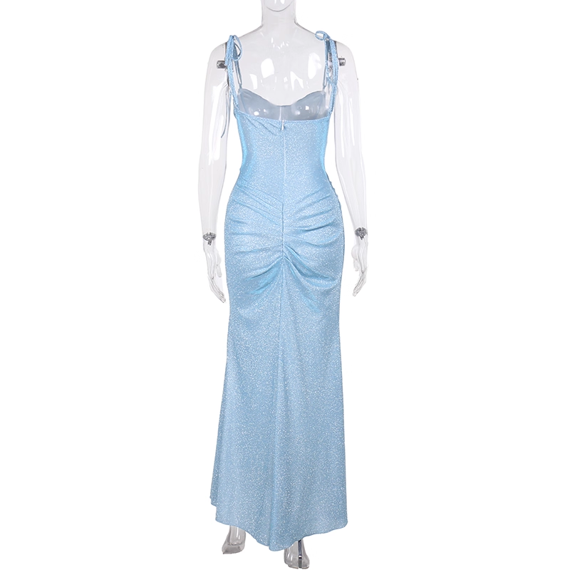 Charming Blue Spaghetti Straps Mermaid Birthday Party Dress Long Holiday Dress YM2239