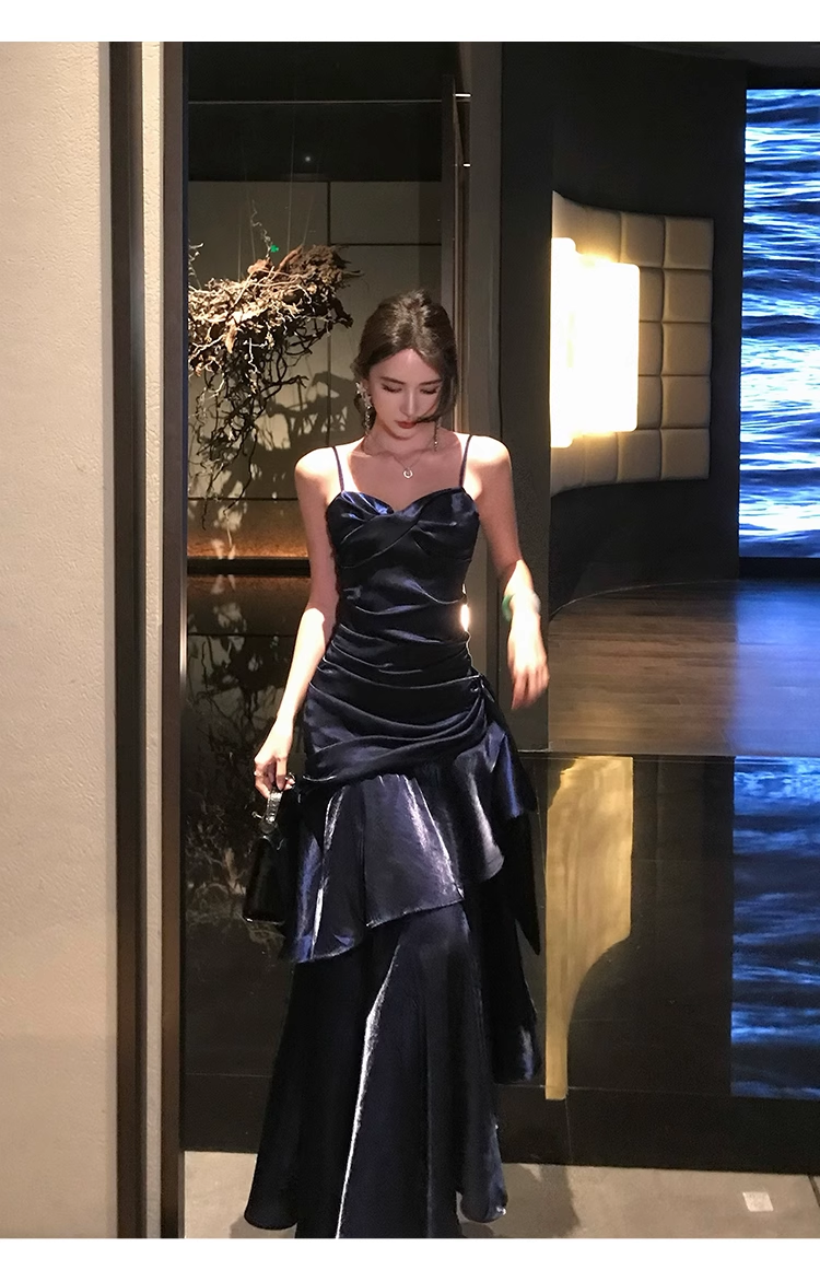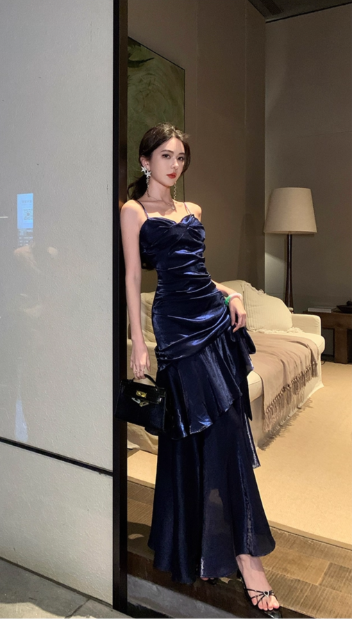 Classy Spaghetti Straps Long Ruffles Party Dress Birthday Dress YM2173