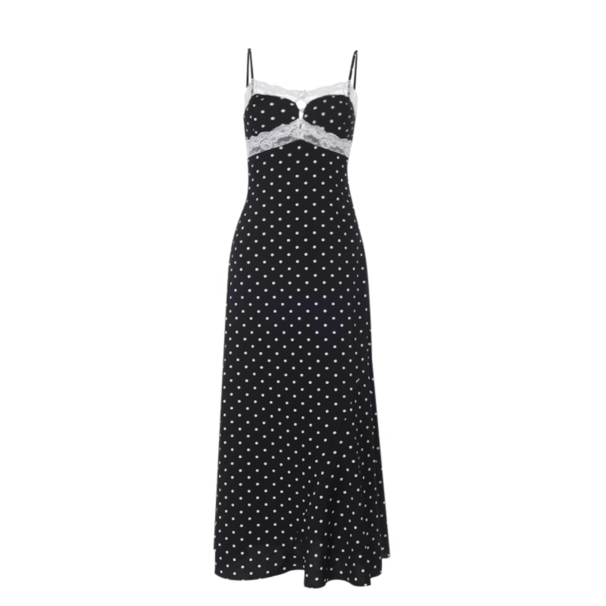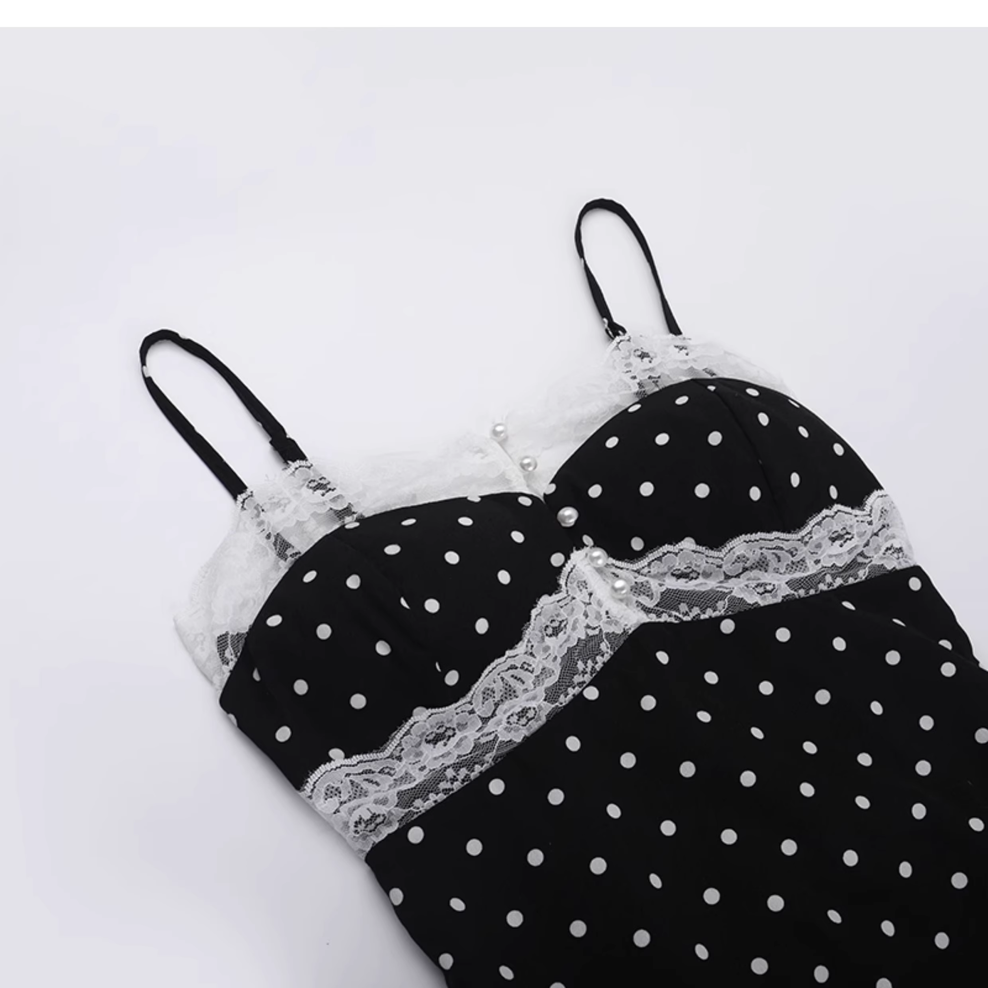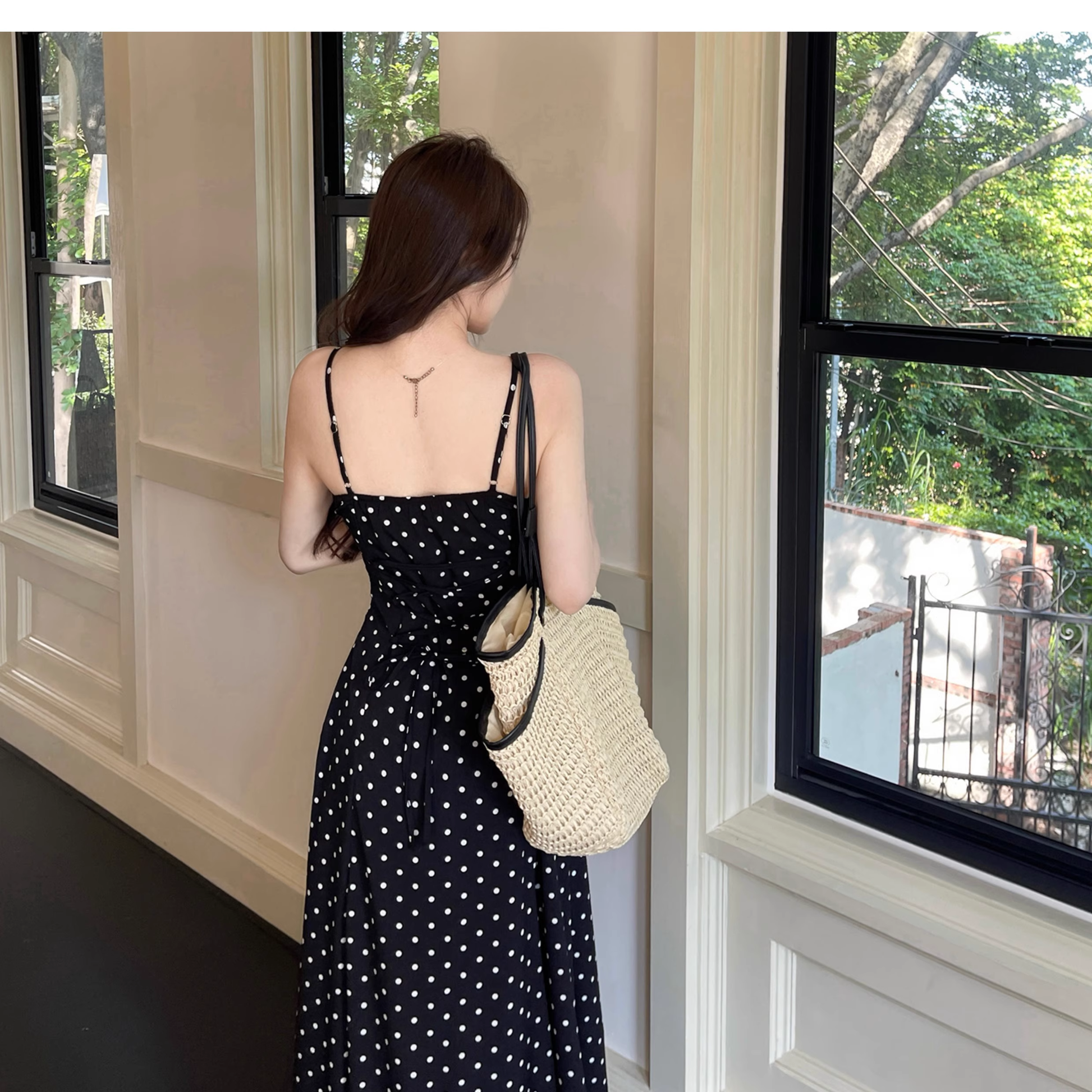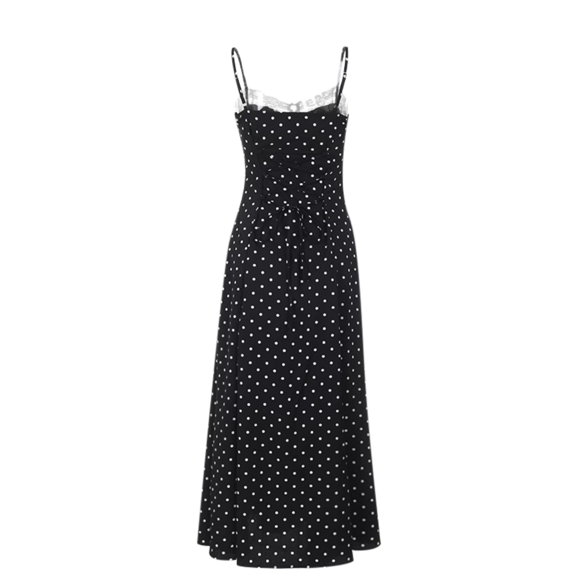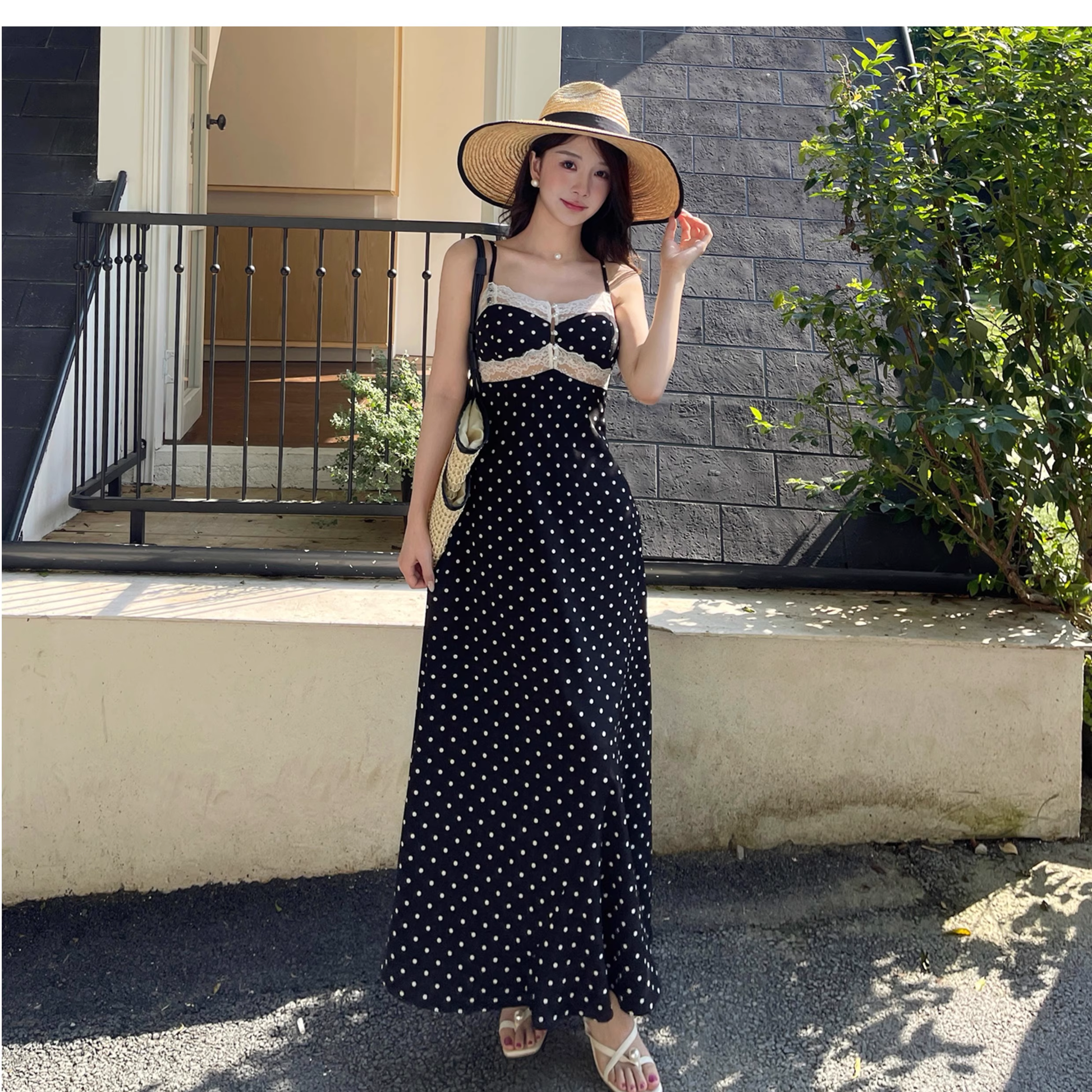 Cute Spaghetti Strap Lace Polka Dot Long Holiday Dress Vacation Dress YM2215