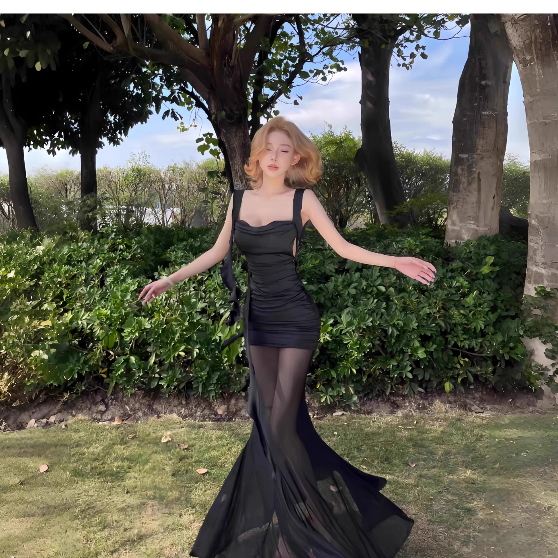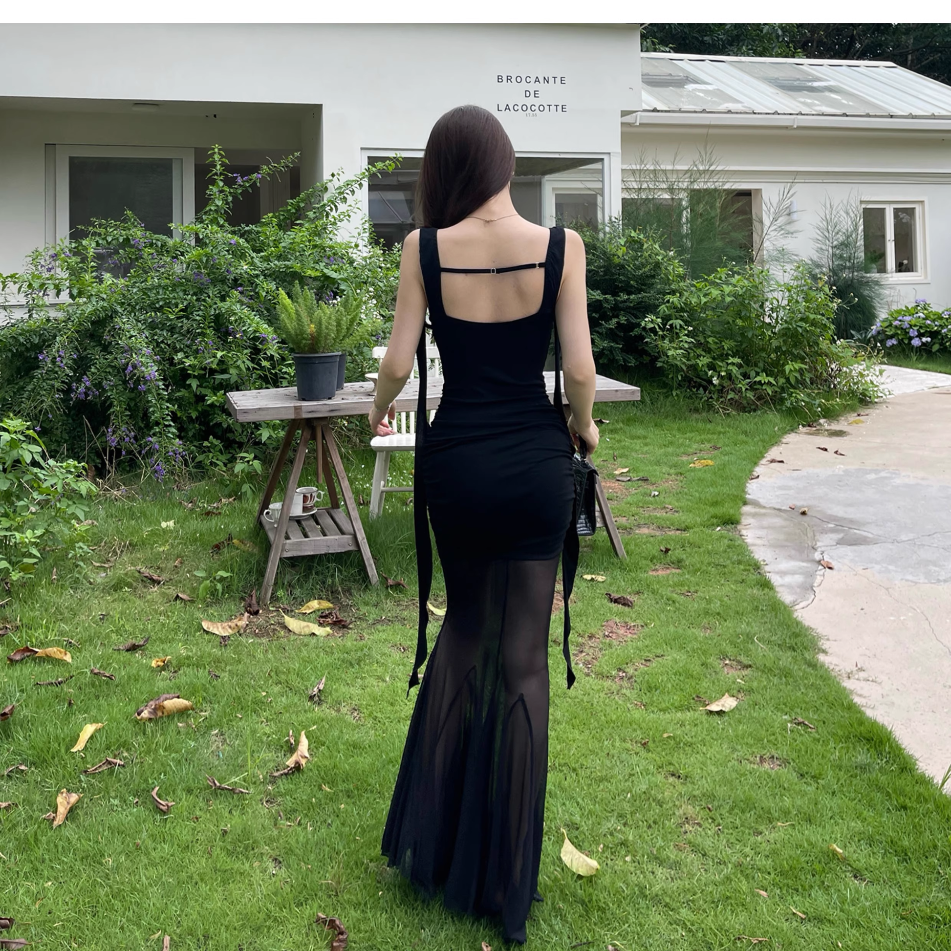 Elegant Black Mermaid Long Holiday Dress Vacation Dress YM2224