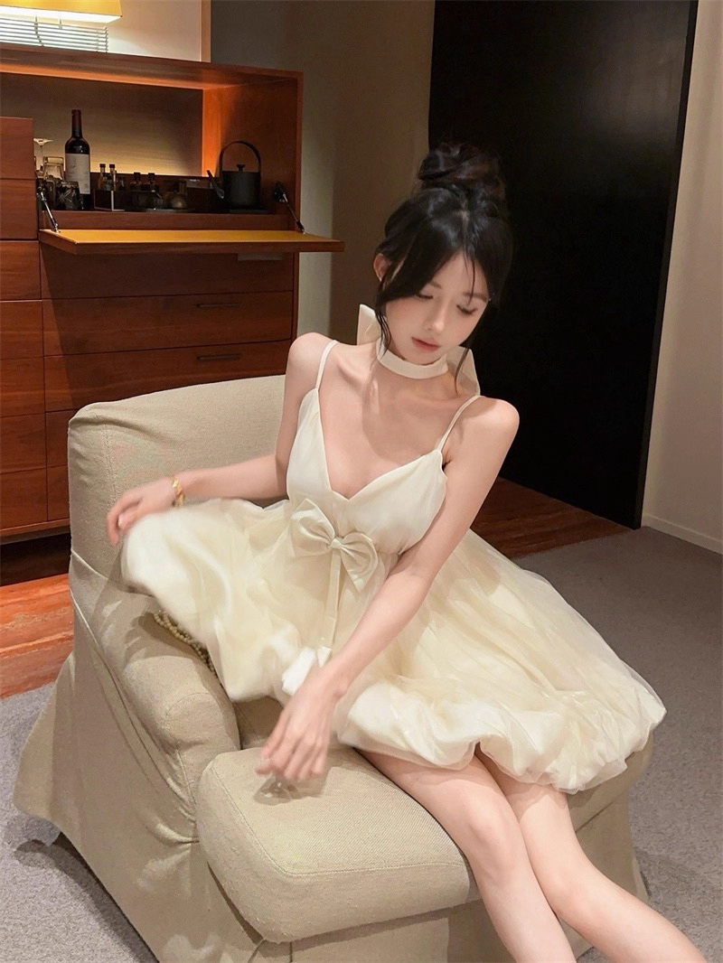 Elegant Light Beige Straps V Neck A Line Birthday Outfits Short Party Dress YM2189