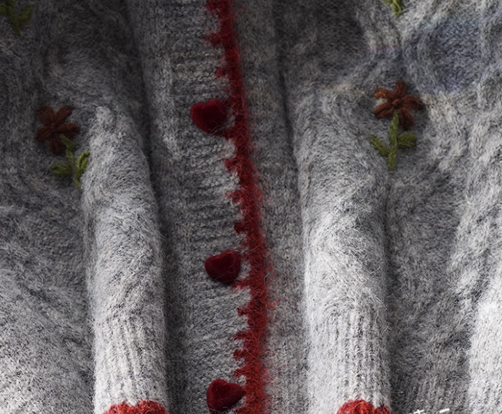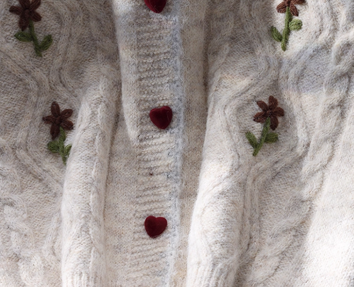 Embroidered POLO collar Short Sweater Cardigan Women's Loose Autumn New Japanese Knitted Jacket YM2343