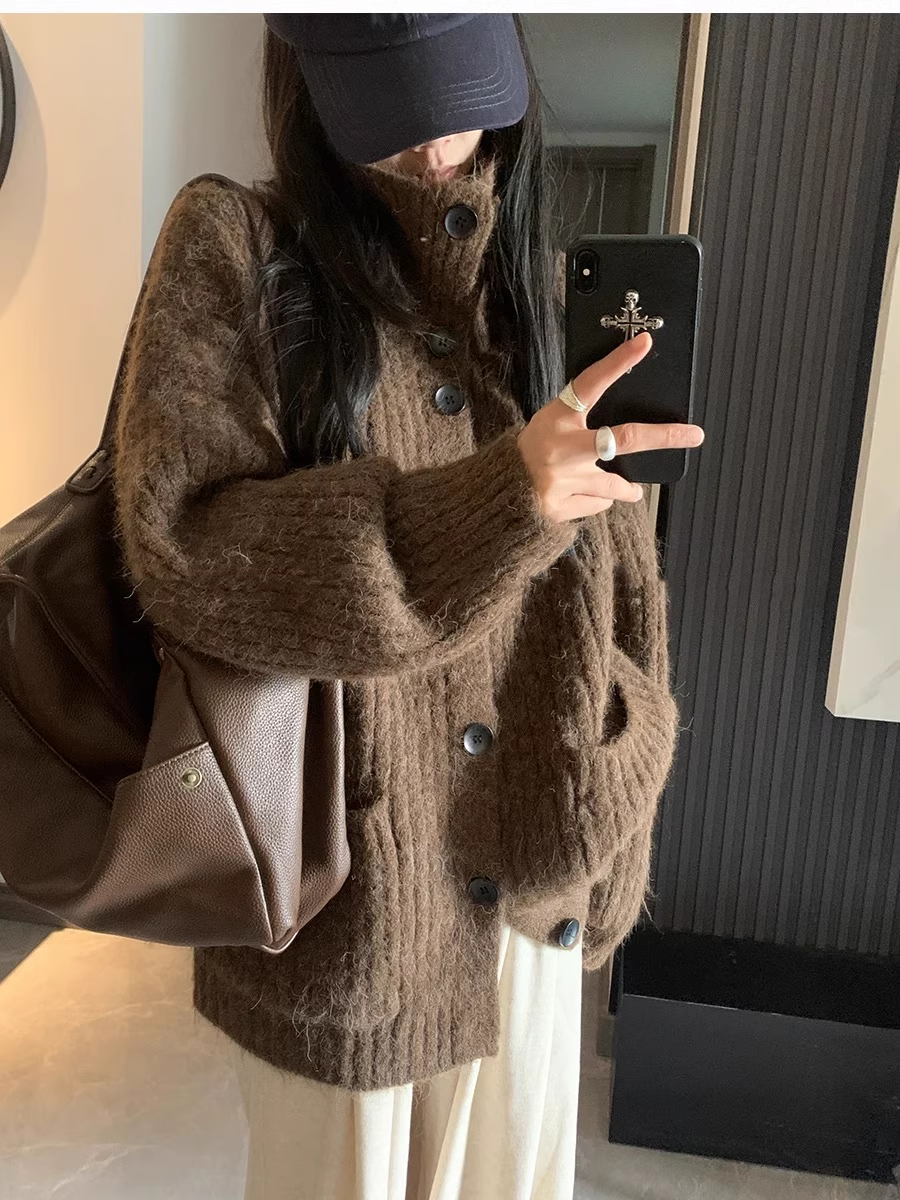 Gray Soft Turtleneck Cardigan Sweater Coat Loose Mid-length Knitwear YM2404