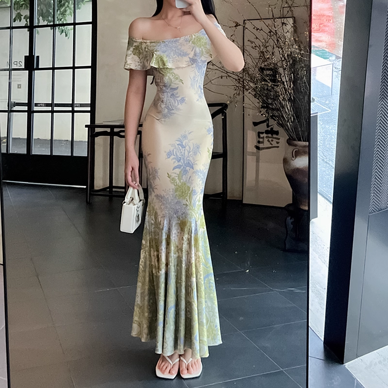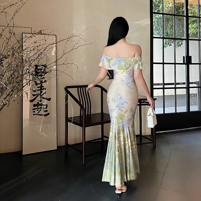 Green Sexy Off The Shoulder Strapless Birthday Dress Long Mermaid Party Dress YM2235