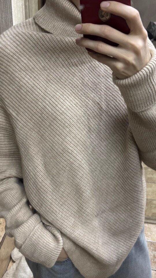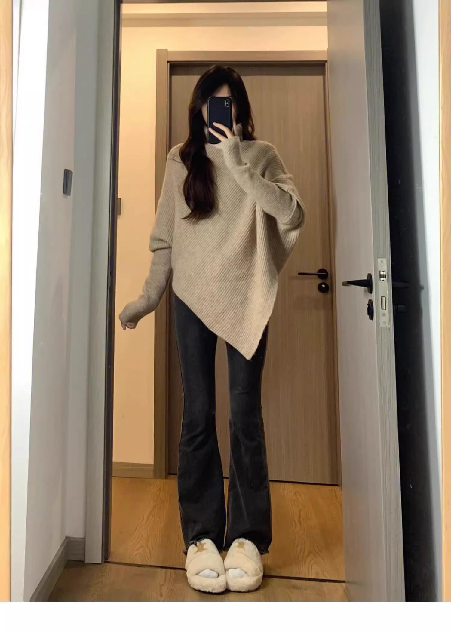 High-neck Irregular Sweater, Soft And Cozy Knit Sweater YM2399