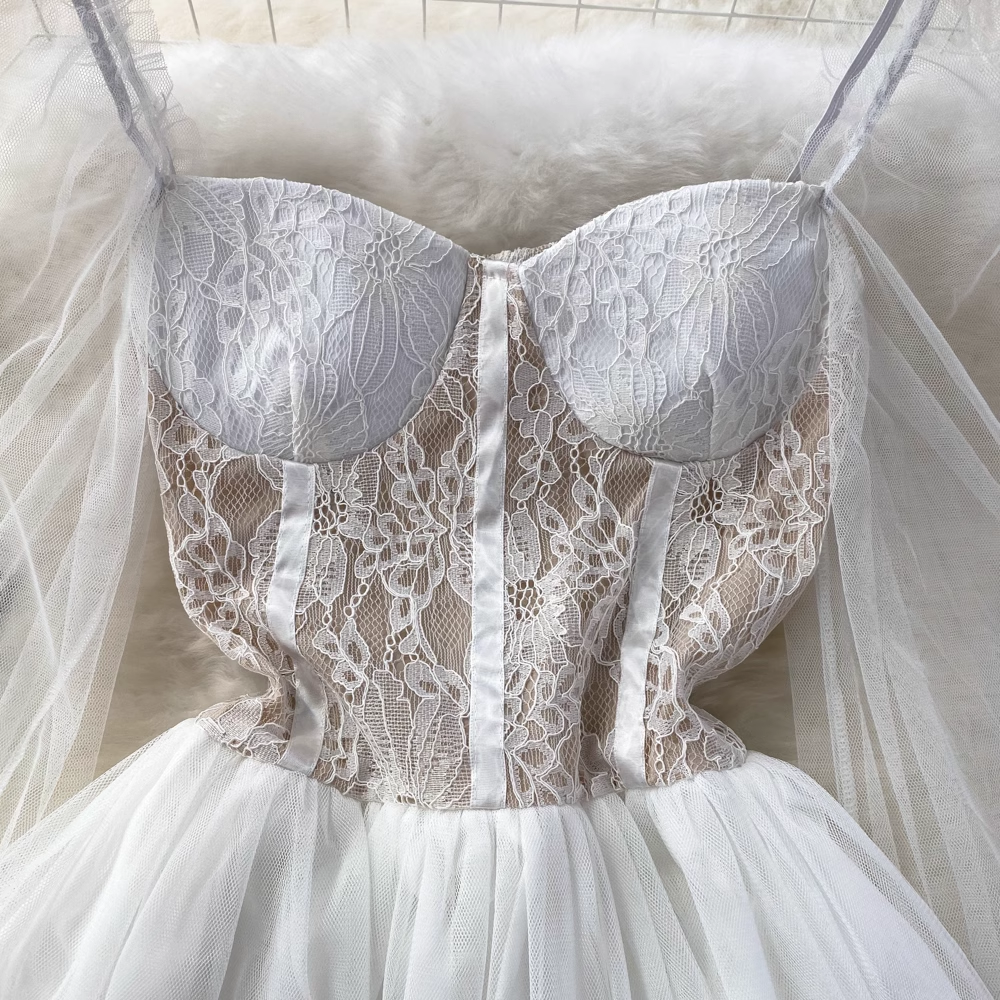 Long-sleeve square neck mesh stitching waist a-line fluffy princess dress summer dress, YM261