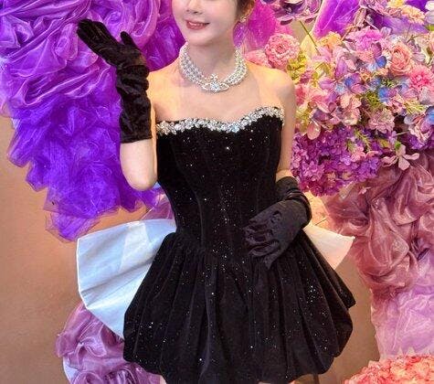 Luxury Black Birthday Dress Princess Velvet Short Dress With Bow YM1736