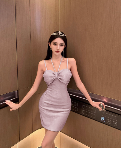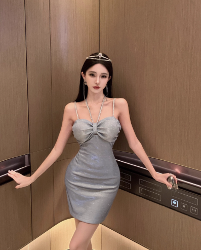 Pink Sexy Halter Birthday Dress Shiny Sheath Short Mini Party Dress YM2185
