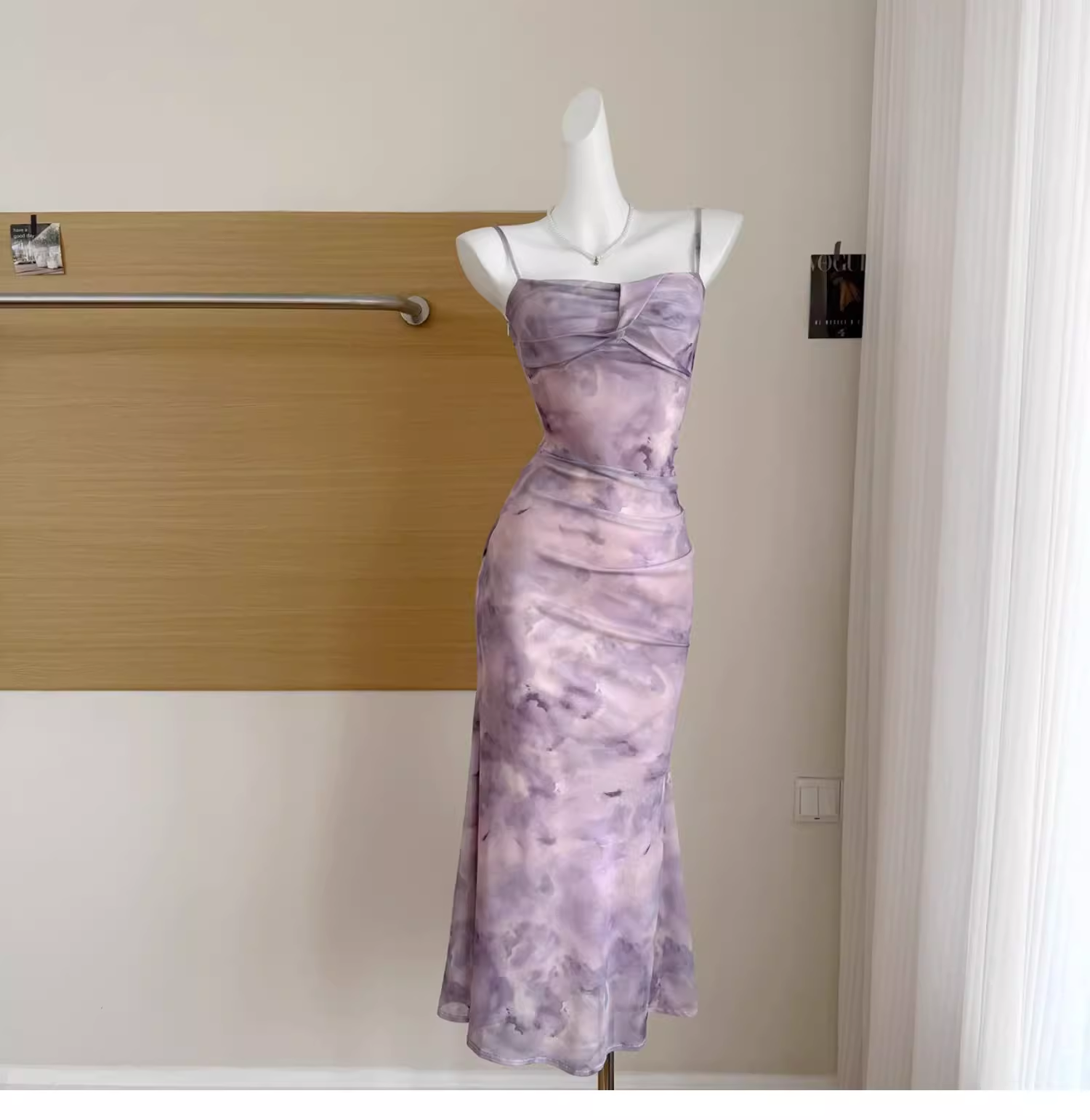Pink Suspender Dress Beautiful Long Vacation Dress YM2088