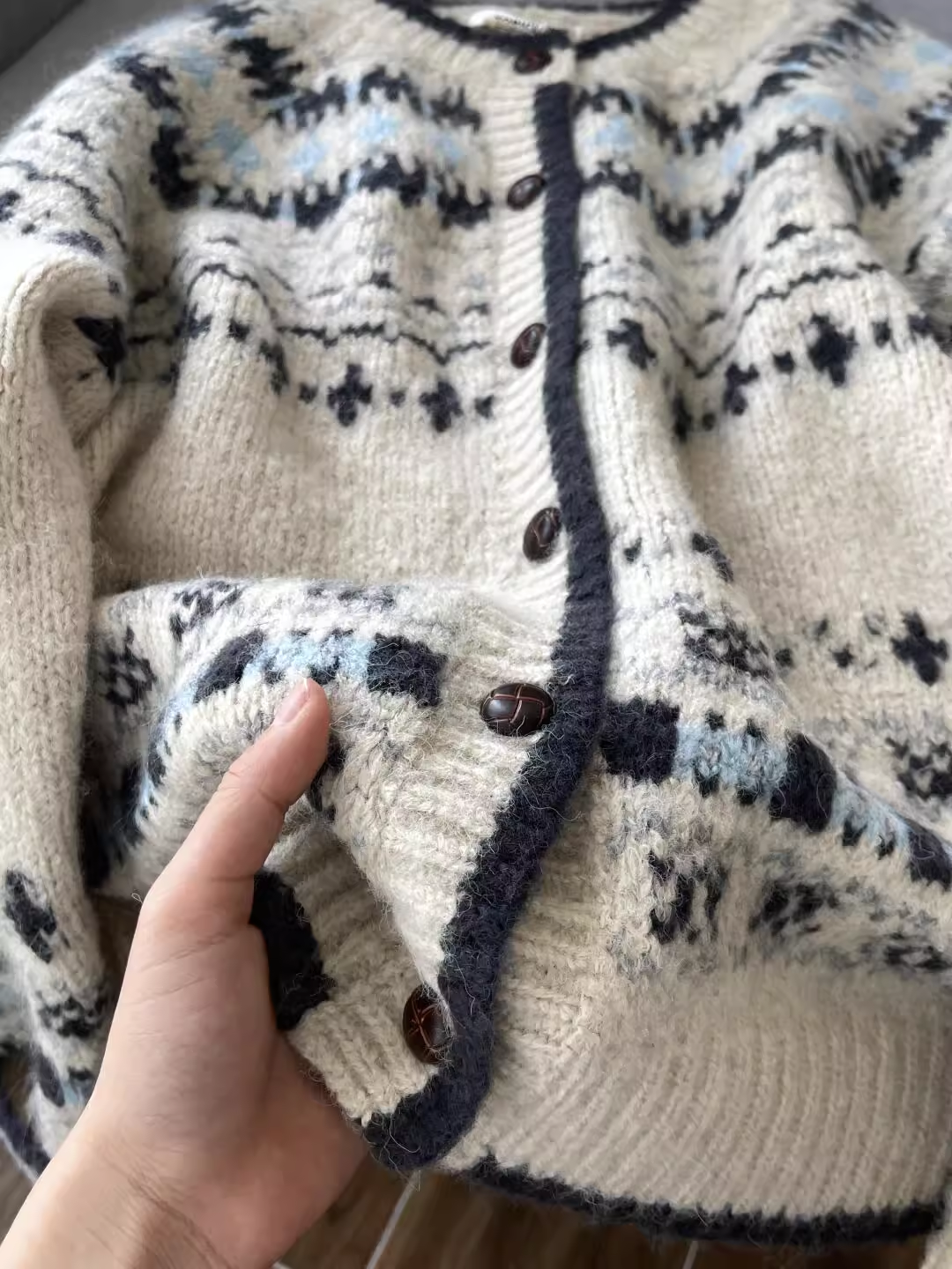 Retro Jacquard Round Neck Knit Cardigan Sweater Coat YM2401