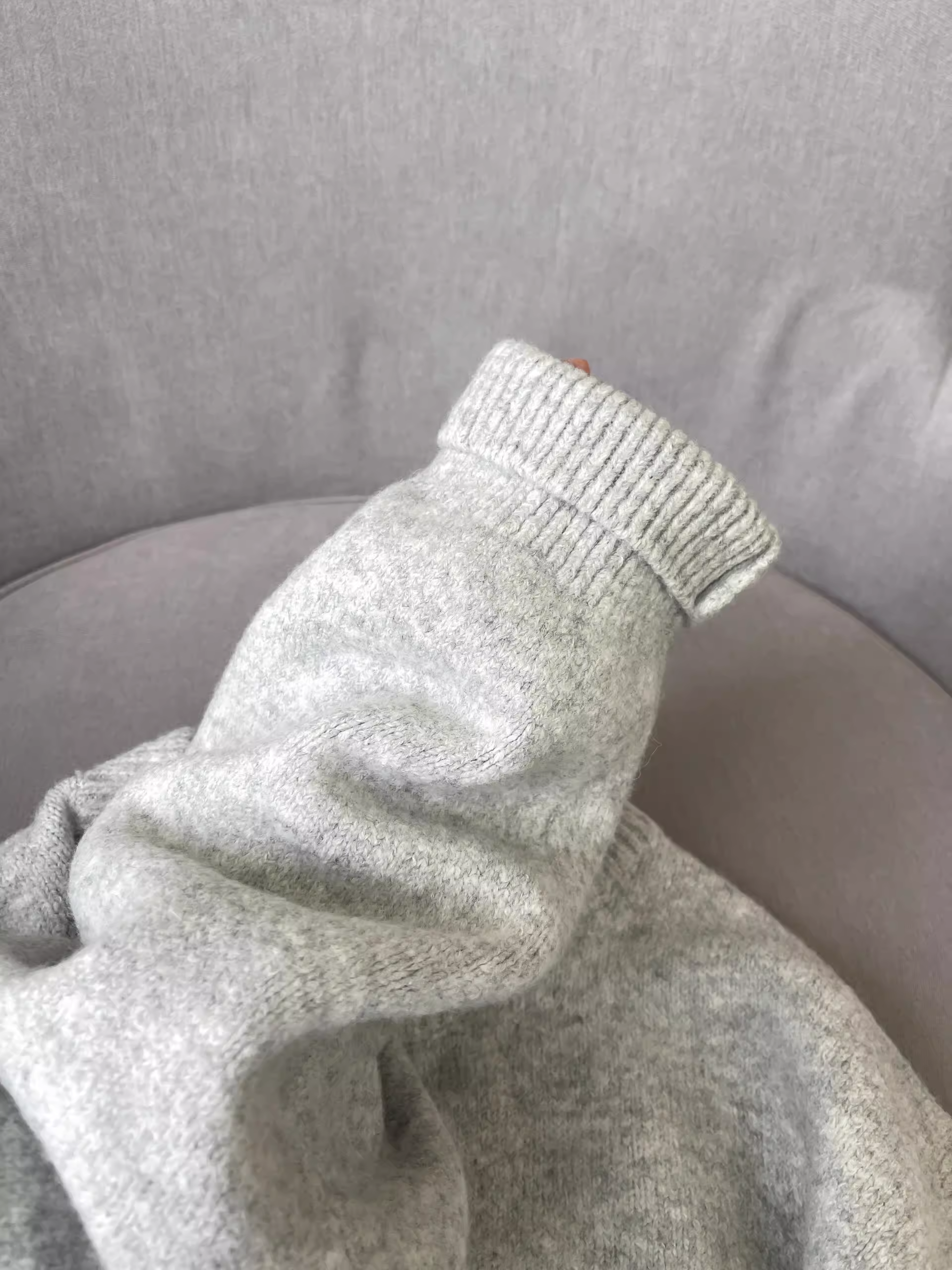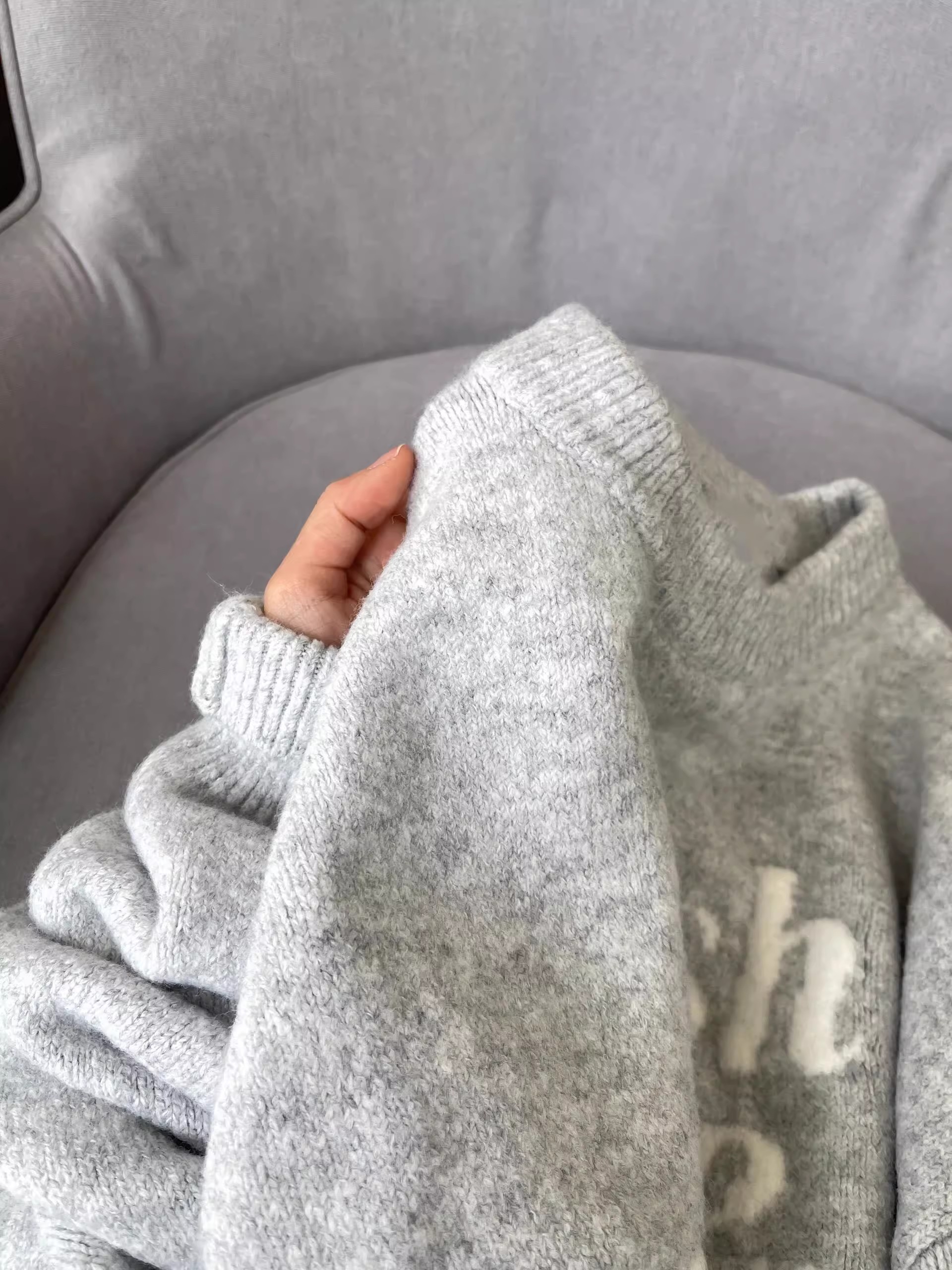 Retro Letter Jacquard Gray Sweater Round Neck Soft Knitted Sweater YM2394
