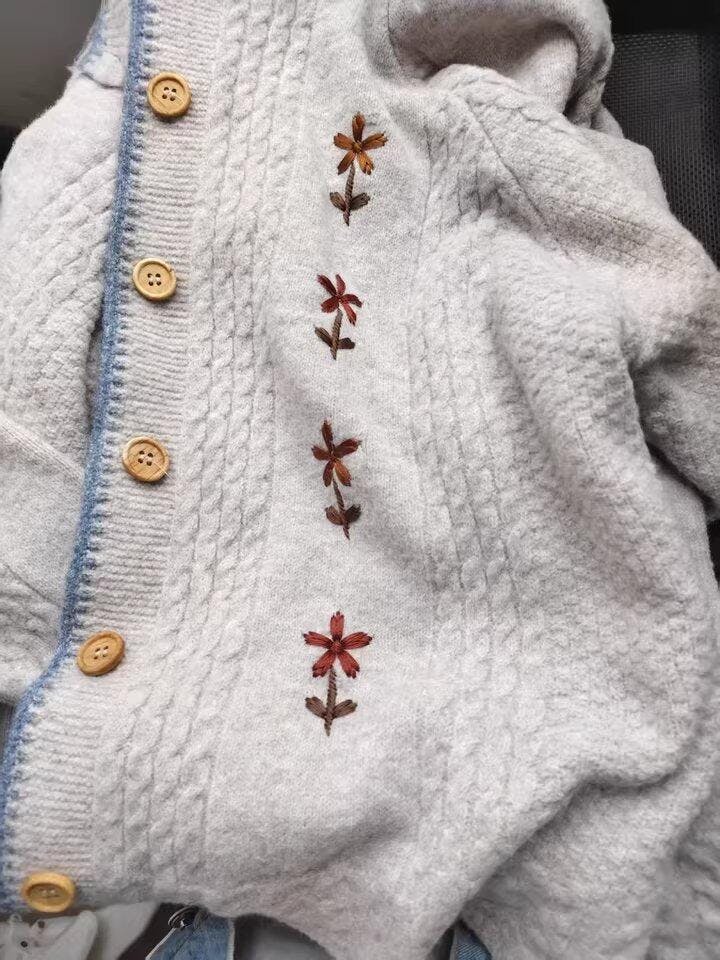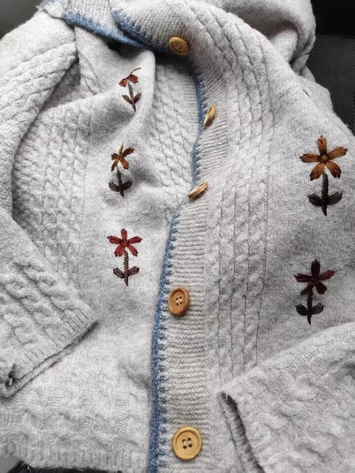 Round Neck Flower Embroidered Cardigan Sweater Jacket YM2393