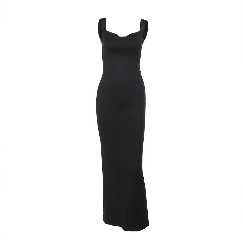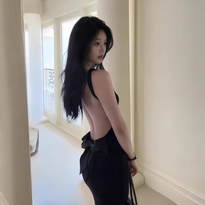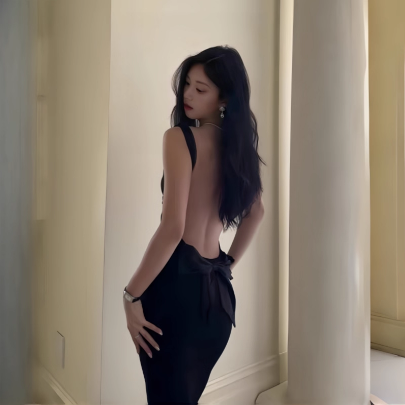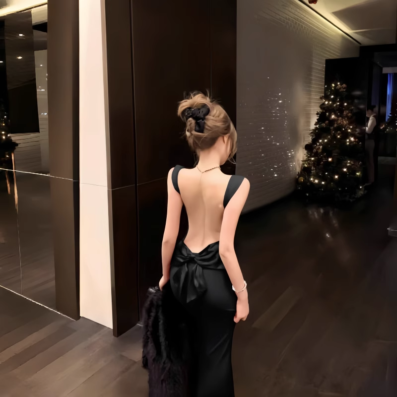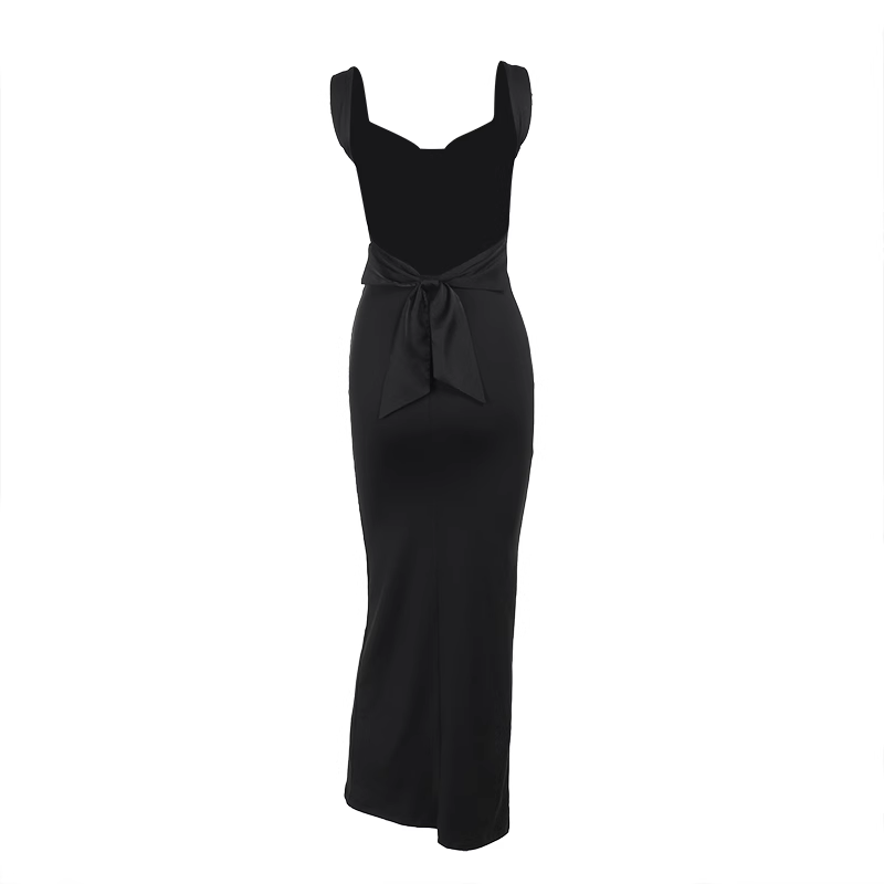 Sexy Black Bow Backless Spaghetti Straps Long Birthday Dress Holiday Dress YM2223