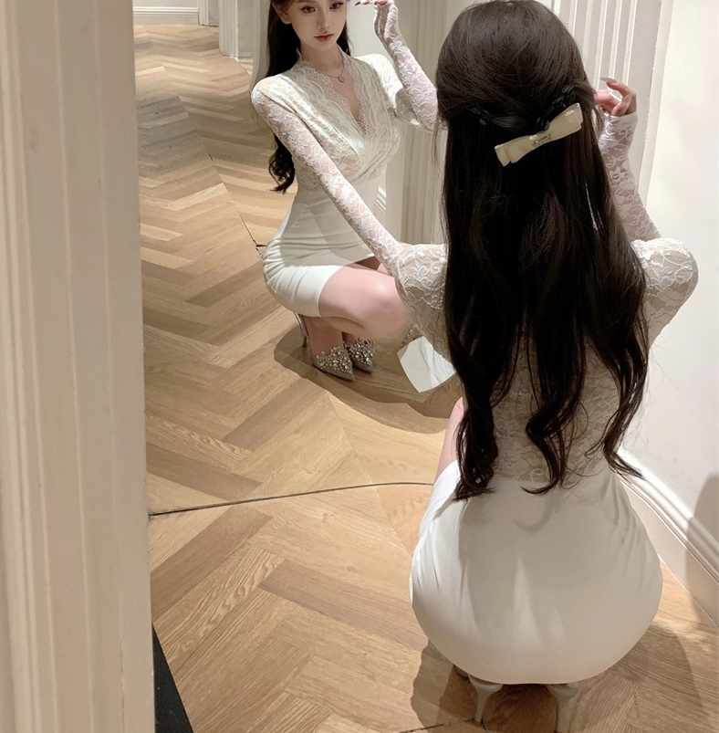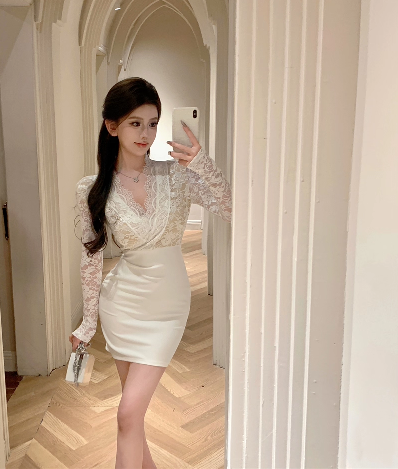 Sexy Black Hip-hugging V-neck Lace Short Dress Birthday Dress YM2334