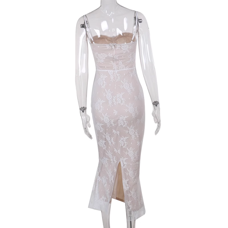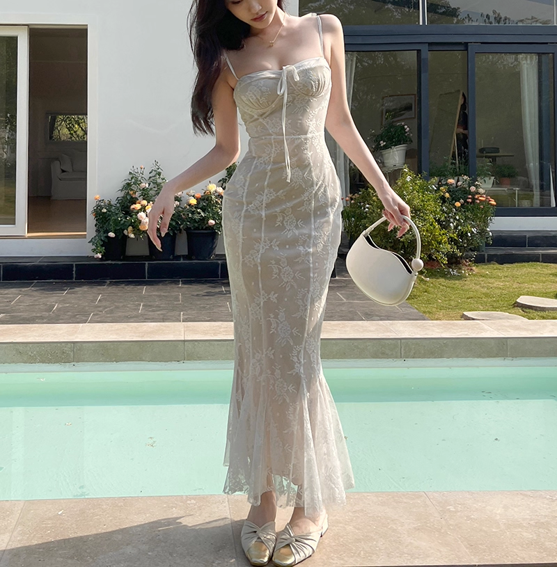 Sexy Black Lace Suspender Holiday Dress Sheath Mermaid Long Birthday Dress YM2258
