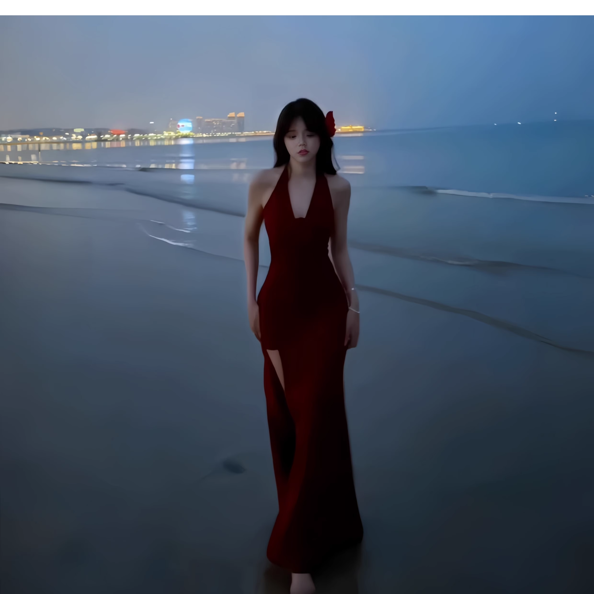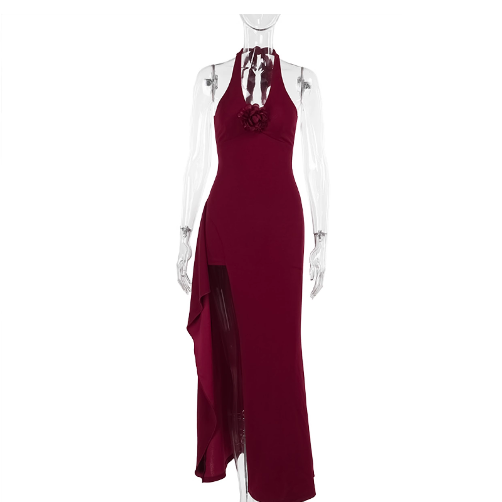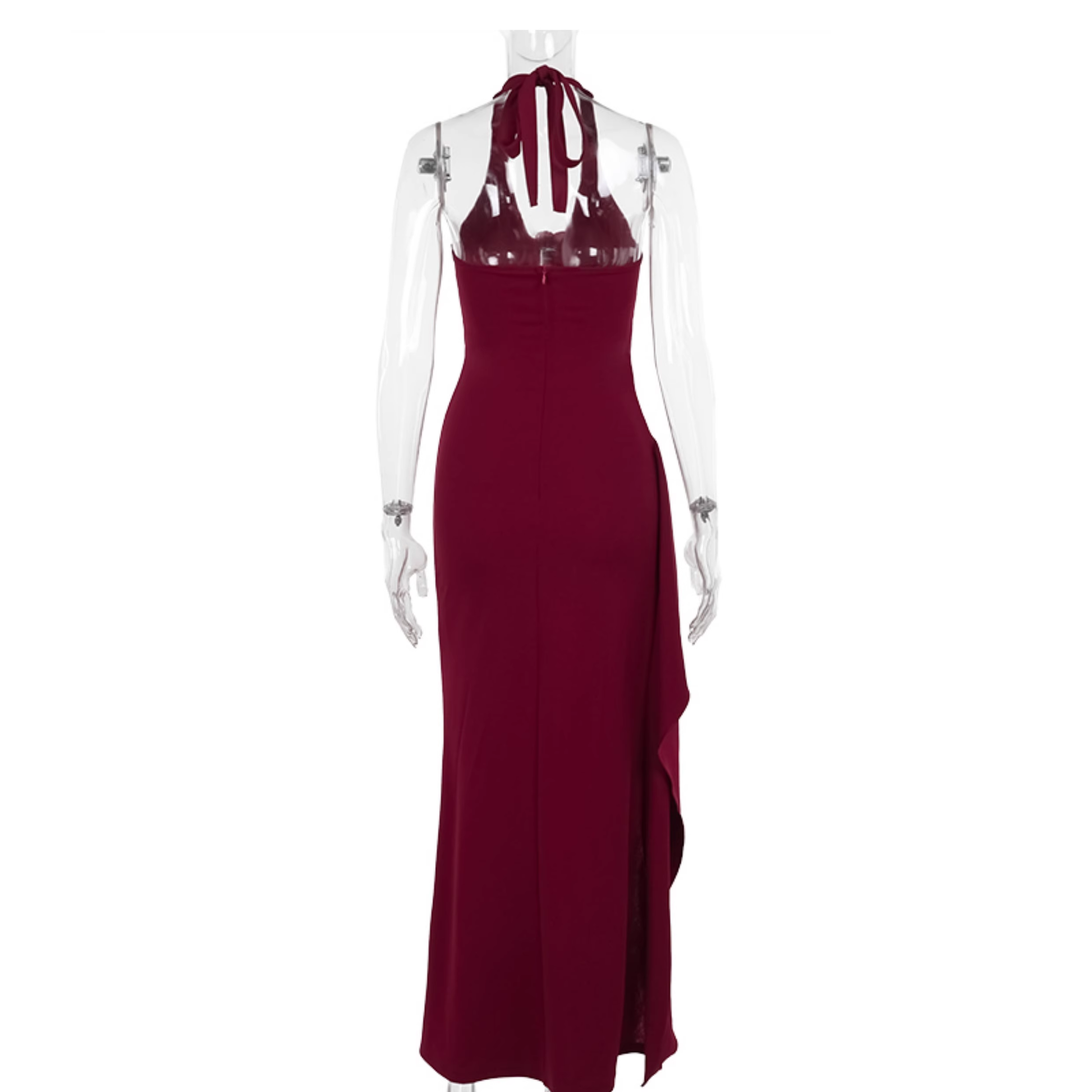 Sexy Red Halter High Slit Long Party Dress V Neck Vacation Dress YM2205