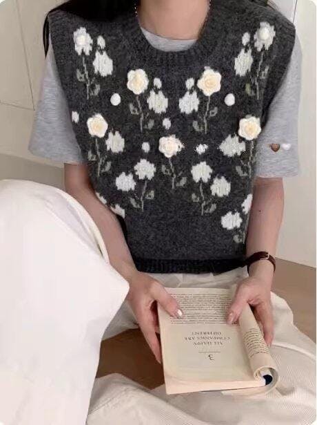 Short Round Neck Autumn New Gray Knitted Sweater Vest YM2355