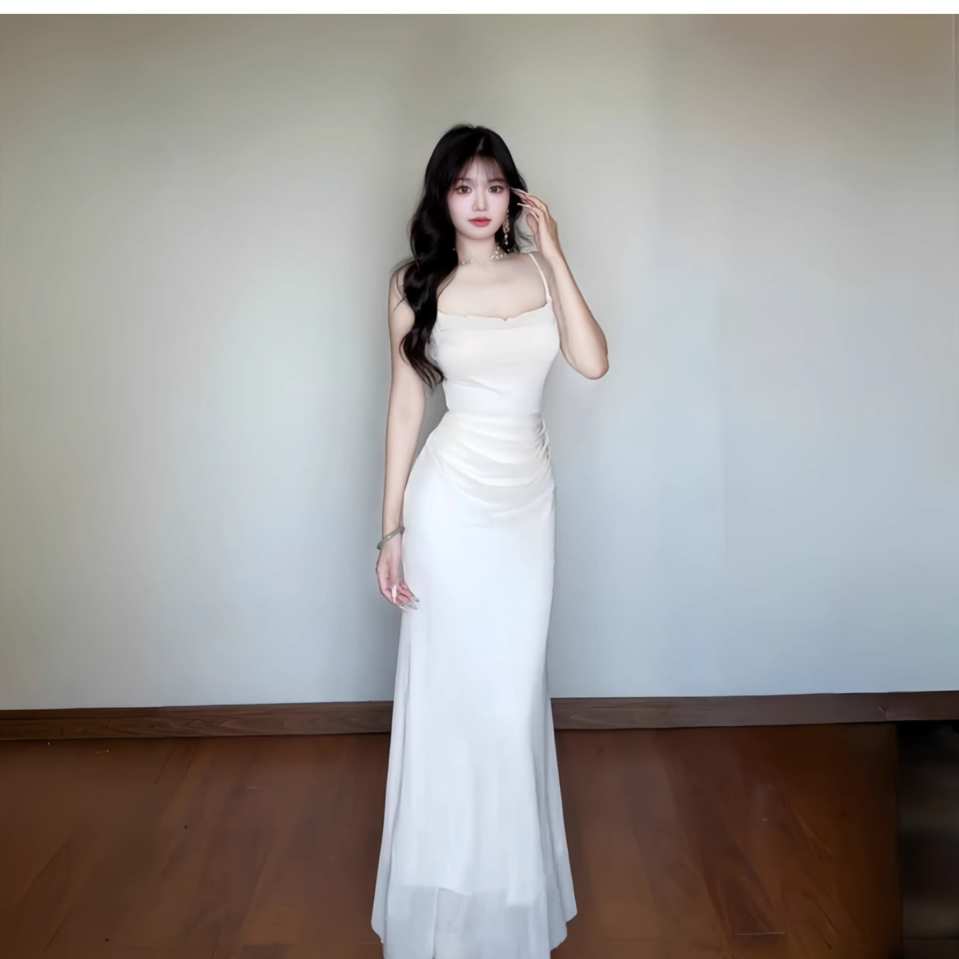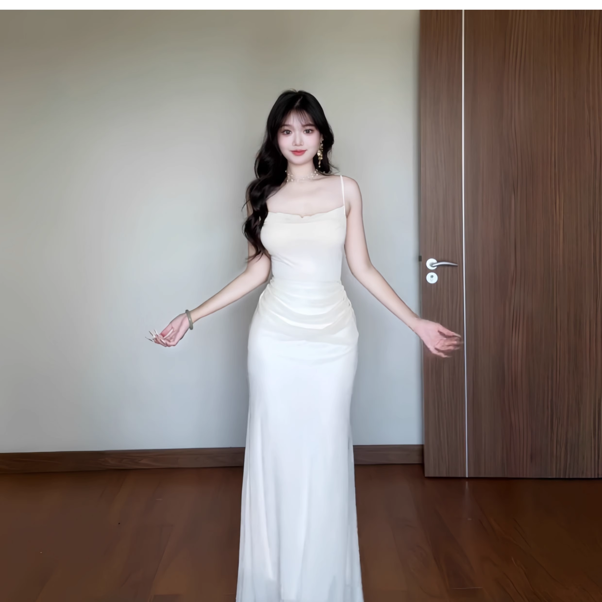 Simple Apricot Spaghetti Straps Long Holiday Dress Seaside Vacation Dress YM2234