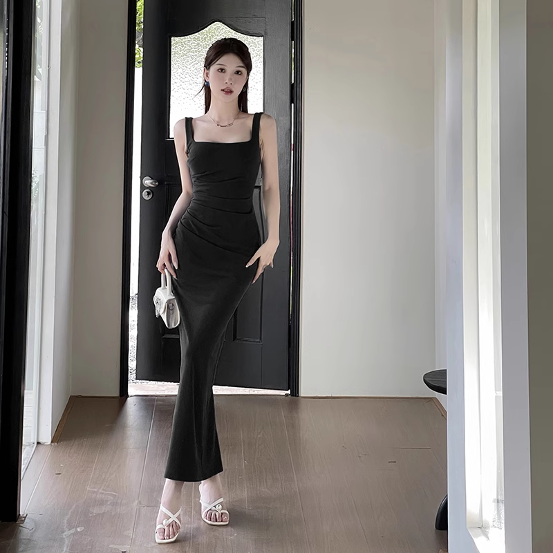 Simple Black Square Neck Sheath Long Holiday Dress Vacation Dress YM2150
