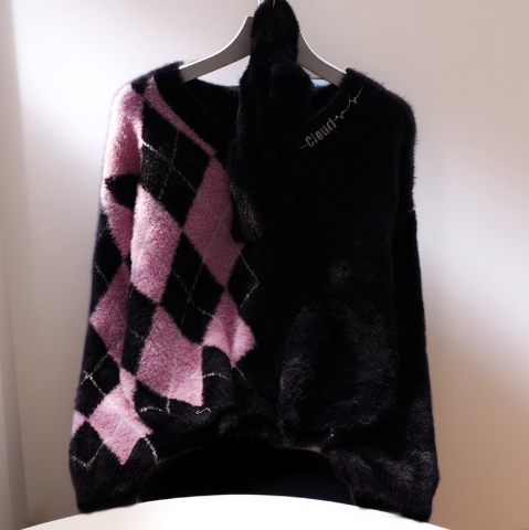 V-neck Blue Short Pullover Sweater New Style Splicing Sweater YM2387