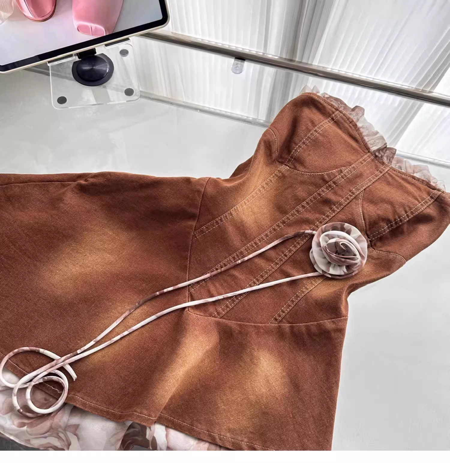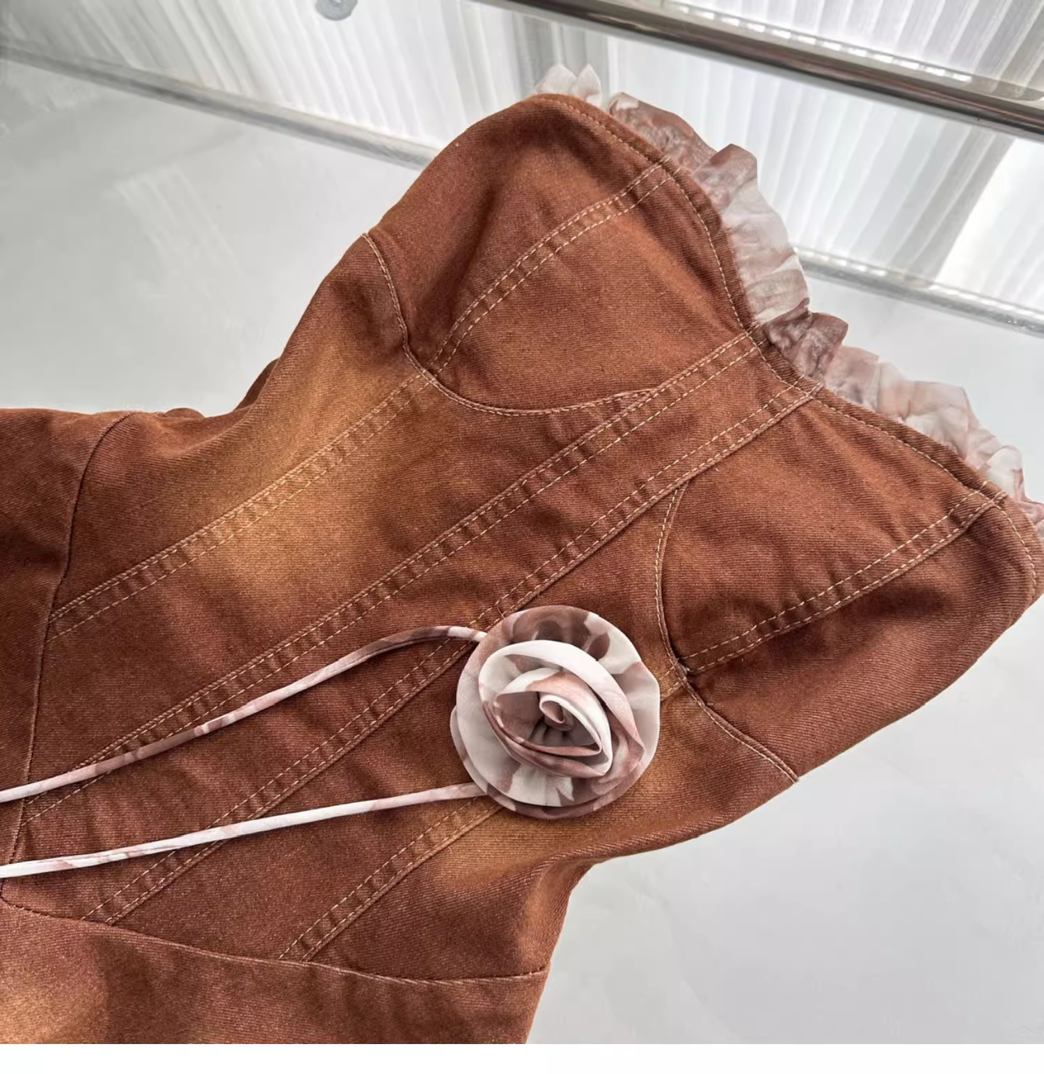 Vintage Strapless Women's Brown Denim Short Party Dress Vacation Dress YM2087