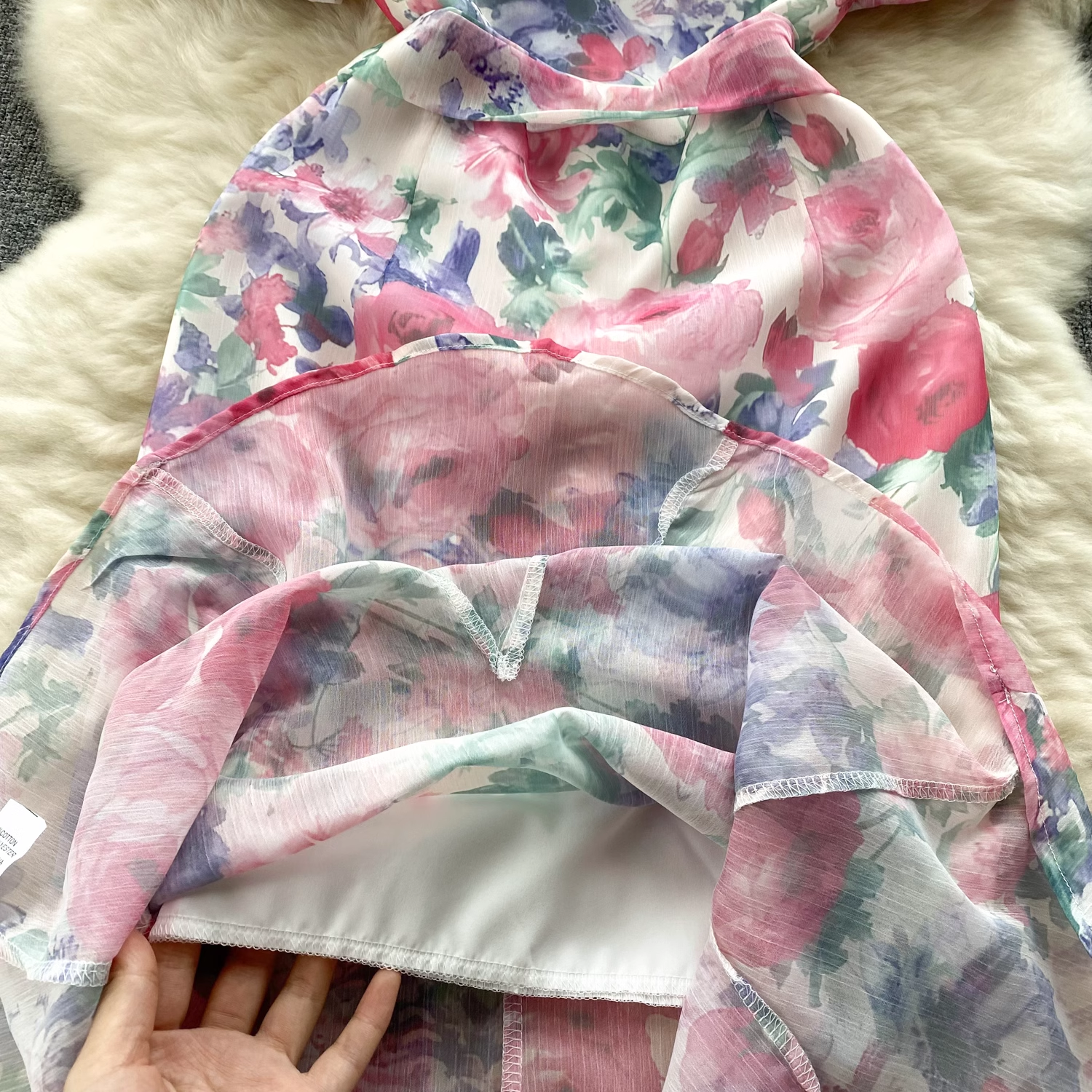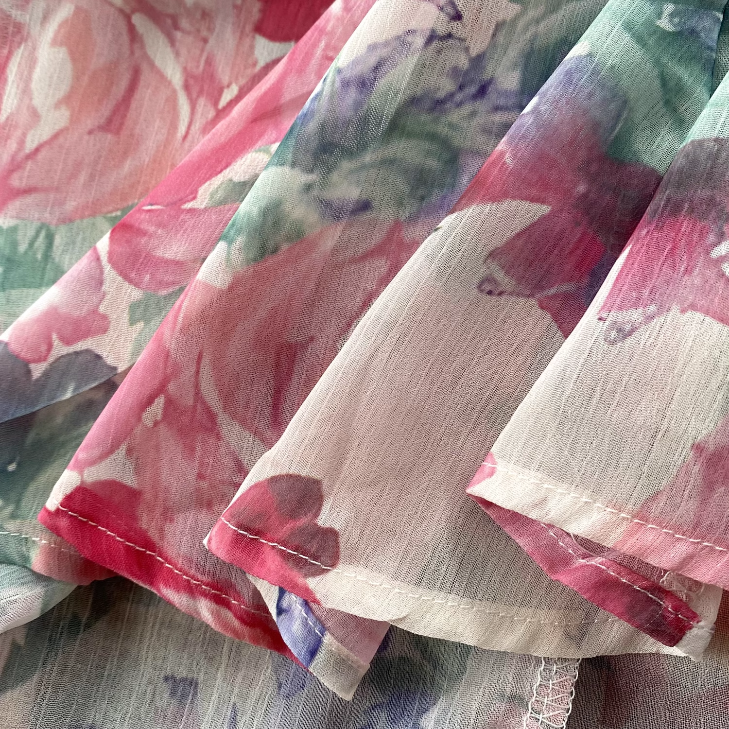 Women's Square Neck Puff Sleeve Floral Chiffon Mermaid Dress YM346