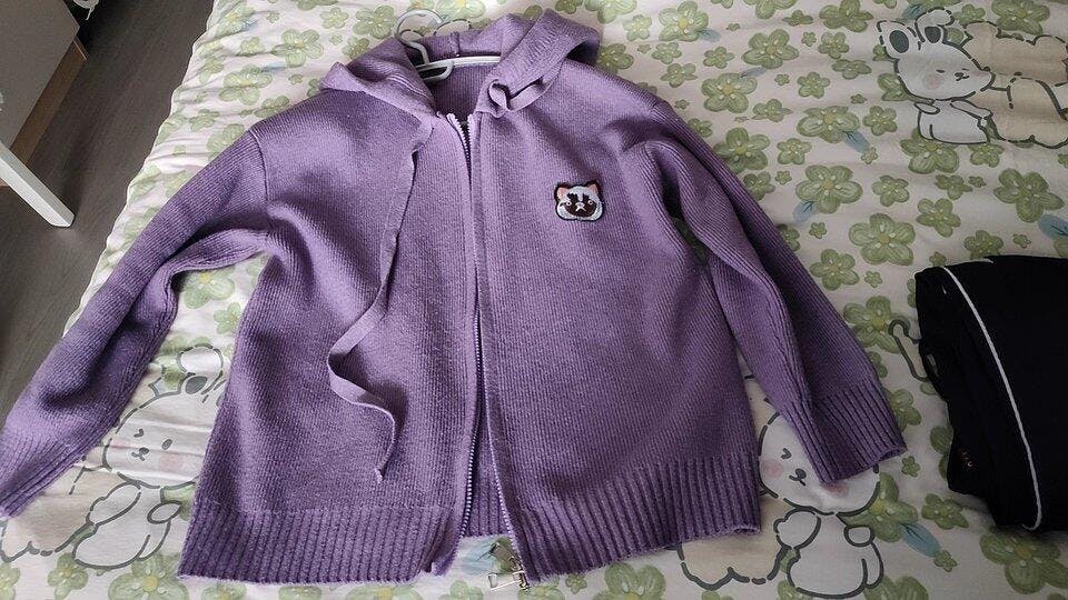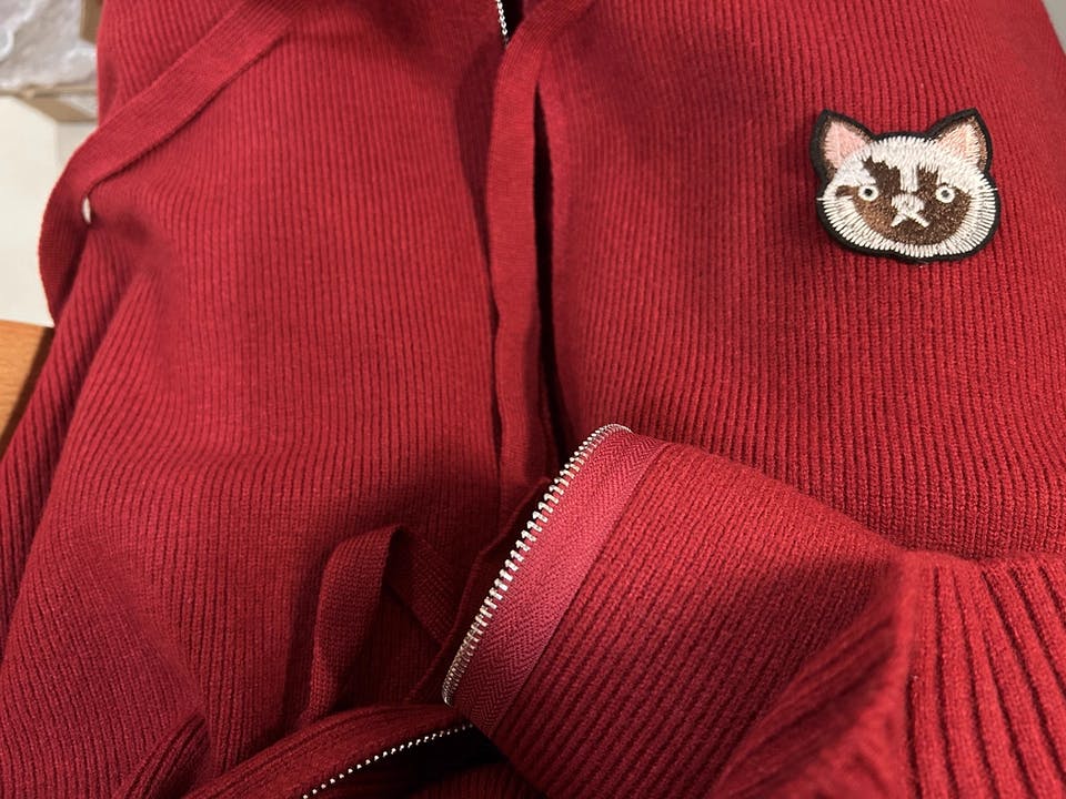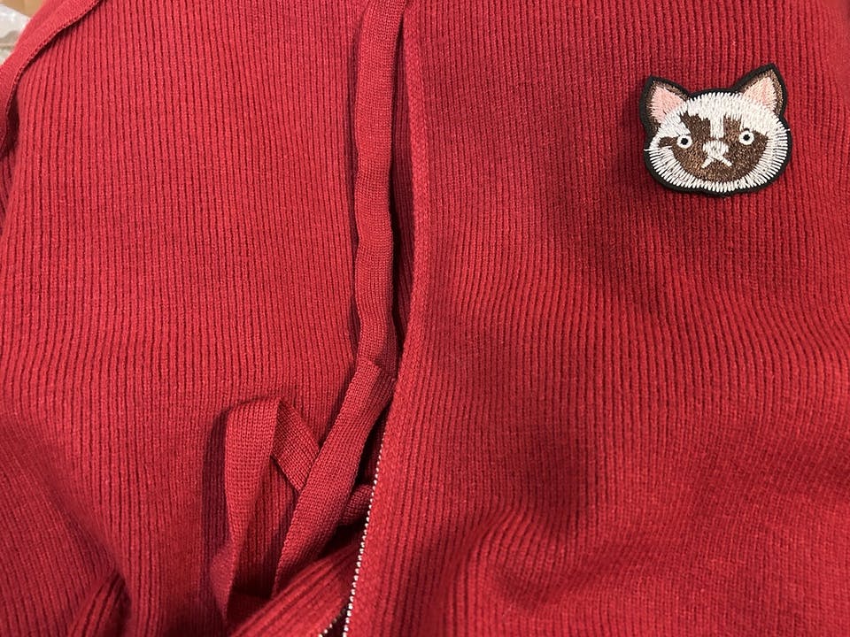 Soft fabric, nice and warm. I love that the fabric of the zipper is dyed the same color as the hoodie fabric.