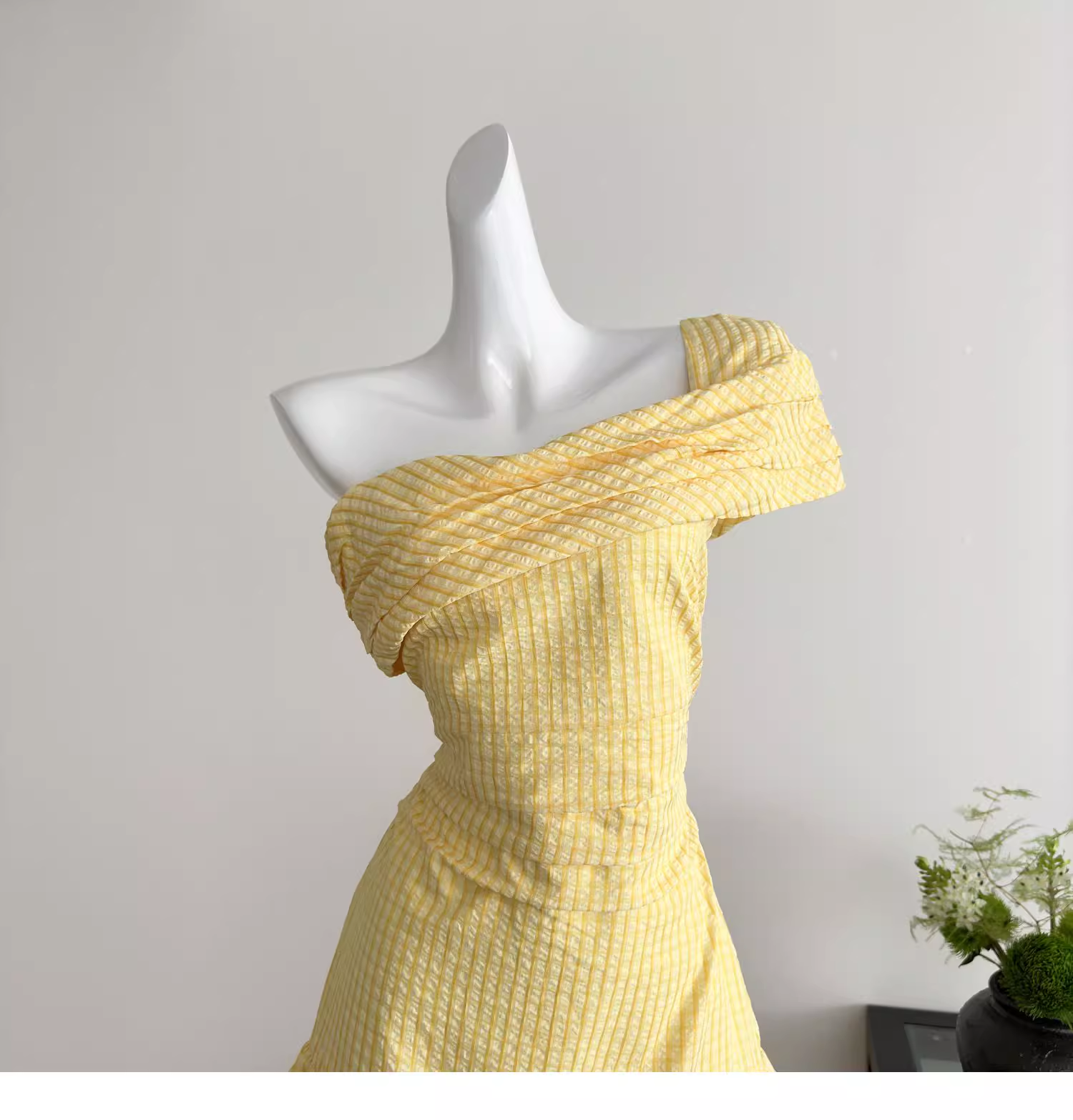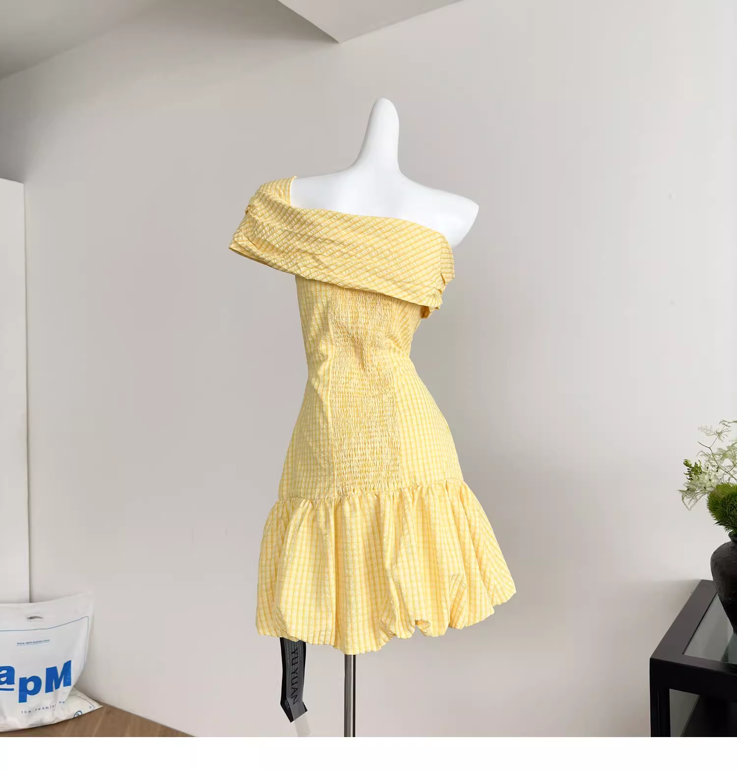 Yellow Off-shoulder Sweet Petite Short Flower Bud A-Line Dress YM2095